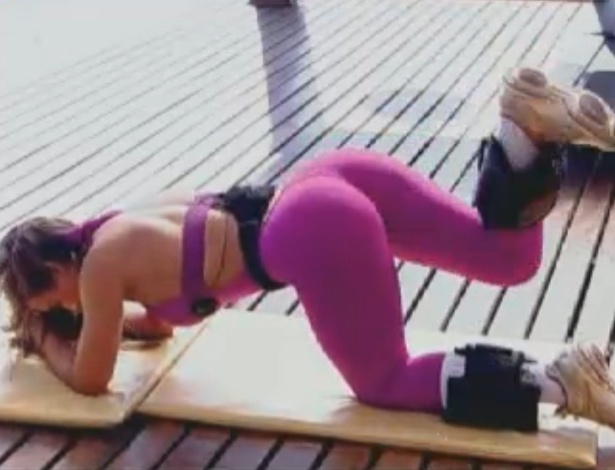 - Nicole Bahls cuida da boa forma na academia (15/8/12) Reprodução/Record Mais