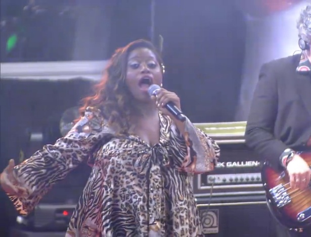 - 13.fev.2013 - A brasiliense Ellen Oléria, campeã da primeira edição do "The Voice Brasil", se apresenta no "BBB13" na festa para os ex-participantes do reality show musical TV Globo/João Cotta Mais