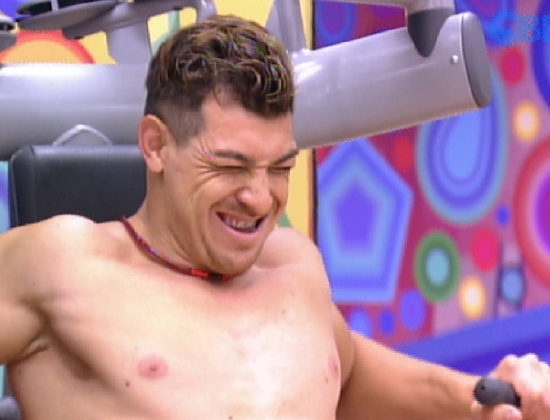 - 4.mar.2015 - Enquanto os outros brother dormem, Cézar malha na manhã desta quarta-feira Reprodução / TV Globo Mais