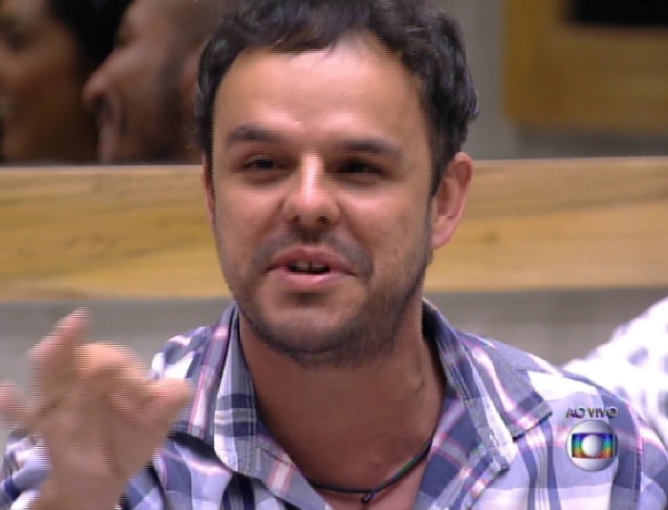 - 17.mar.2015 - Rafael é o oitavo eliminado do "BBB15", com 77% dos votos. Após abraçar a família, Rafael volta para falar com o apresentador Pedroi Bial Reprodução/TV Globo Mais