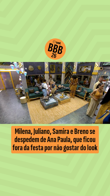 Após show de Ana Castela, Ana Paula Renault vai para festa do BBB 26 - Milena, Juliano, Samira e Breno se despedem de Ana Paula, que ficou fora da festa por não gostar do look
